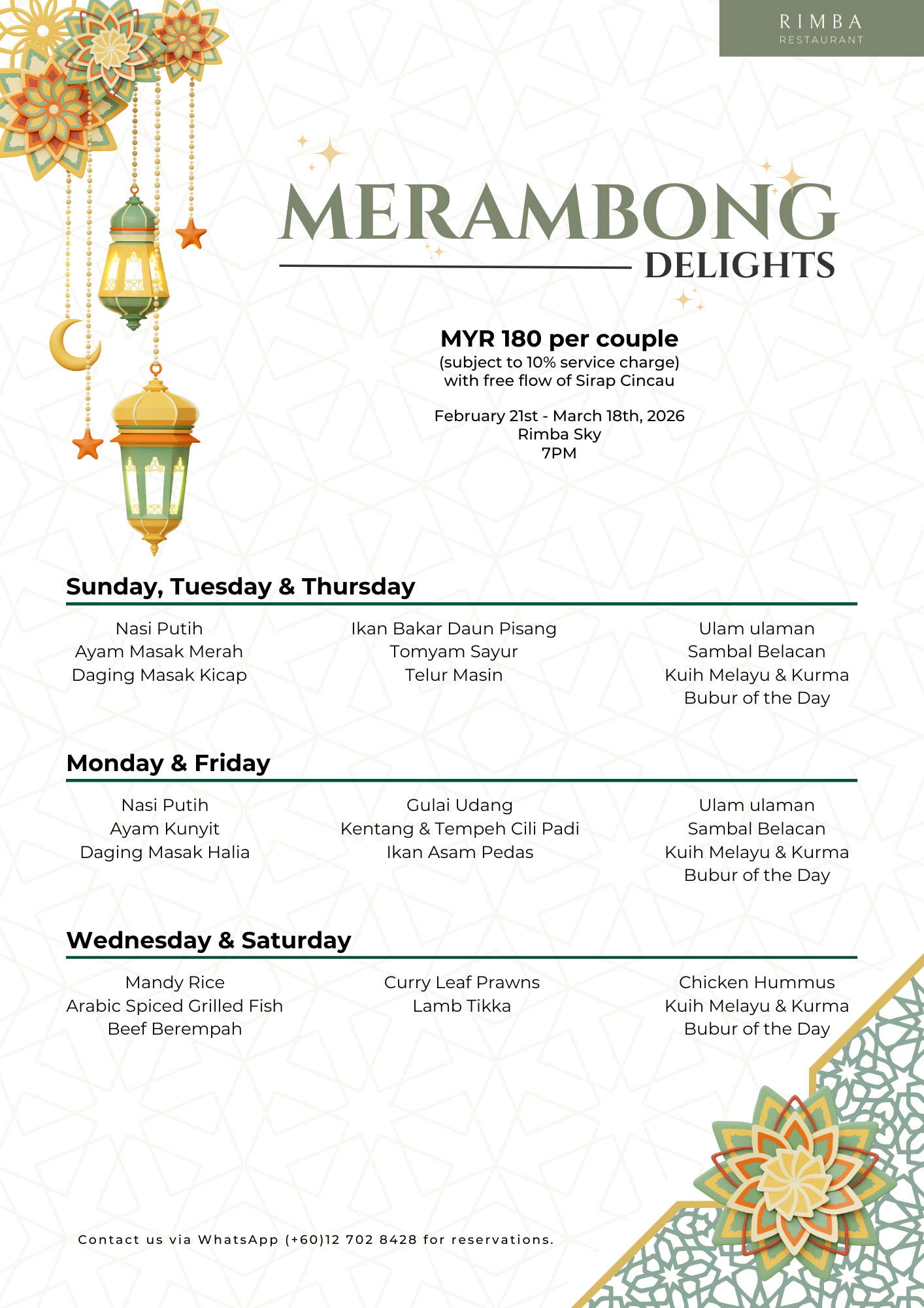 Savour a thoughtfully prepared breaking fast dinner at Rimba Sky Rooftop, set against Langkawi’s stunning coastal views and sun setting into the sea. Enjoy an evening of delicious local flavours, warm ambience, and unforgettable moments with your loved ones.